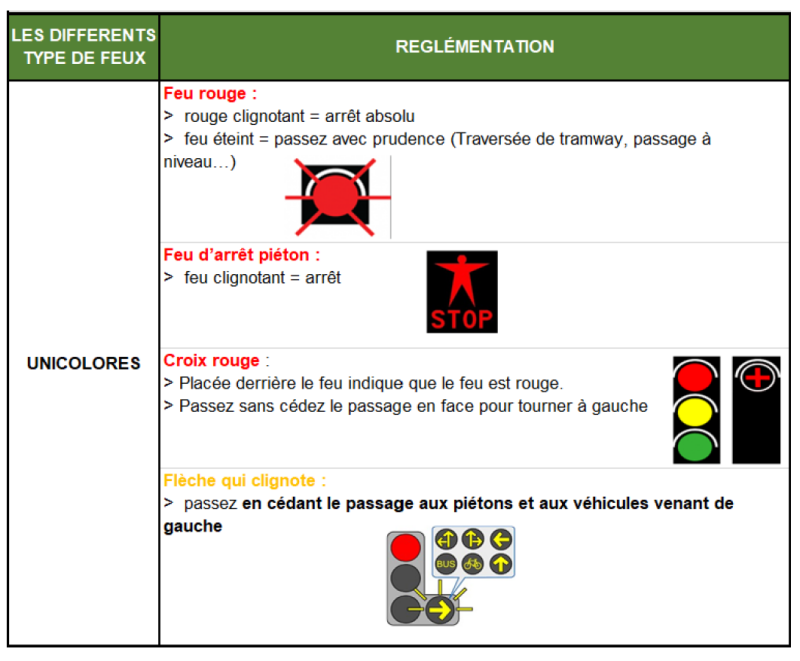 Les différentes signalisation lumineuse