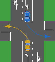 Lorsque l'on tourne vers la gauche cela implique de croiser la voie au sens de circulation opposé.