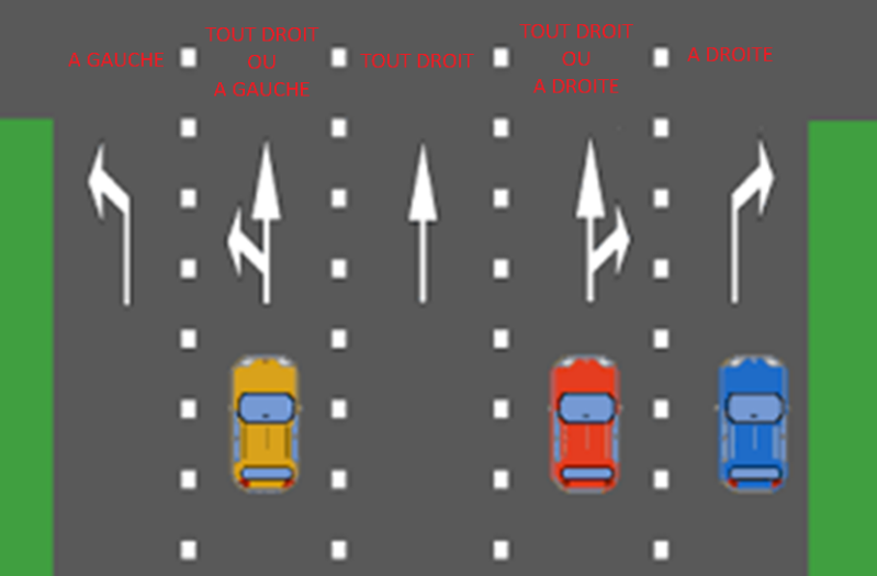 - Lorsque les voies comportent des flèches directionnelles, on doit se placer le plus tôt possible vers la voie la plus à droite qui va là où on souhaite aller.