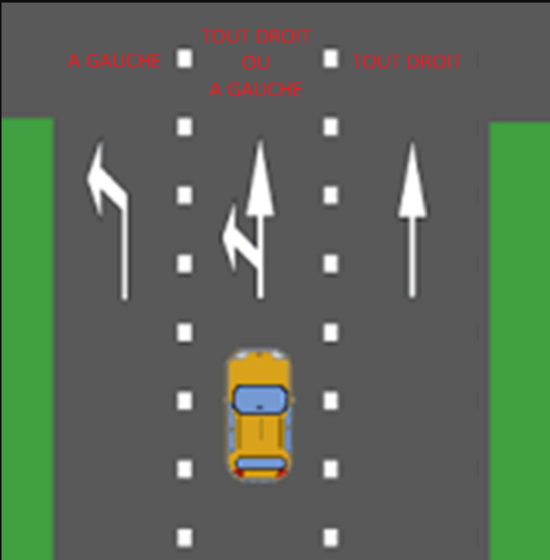 Si il y à plusieurs voie pour tourner à gauche se placer sur la voie la plus à droite de toutes