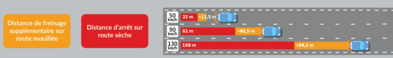 Attention sur sol humide augmentez vos distances de sécurité d'au moins 1 seconde